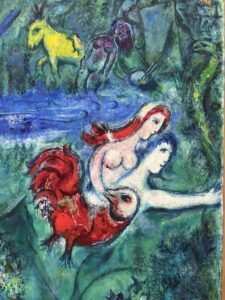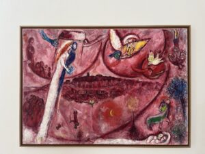 Chagall, który całe życie wierzy w piękno i miłość z rozbrajającym uśmiechem starego mistrza, mówi do oka kamery, do nas w przyszłości, którzy będziemy zanurzeni w jego obrazach odczuwać te emocje, jakby były nasze własne  – „zaczęła się wojna, a ja się ożeniłem”. I czuję, jakby to było jedyne możliwe, co można zrobić w obliczu grozy. Zanurzyć się w miłości i pięknie. I czuję to całą sobą, gdy stoję w czerwonym blasku cyklu „Pieśni nad Pieśniami” malowanym dla drugiej żony Vavy, o której artysta napisze „moja żona, moja radość, moje szczęście”. Wychodzę z tych sal aż boleśnie barwnych, oszołomiona pięknem jego onirycznych wizji życia, wprost w rozżarzone południe i czuję niewysłowione szczęście.