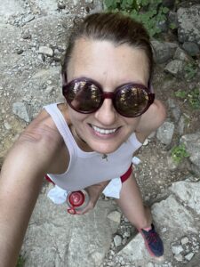 Wędrówka przez wymagający teren to jest też dla mnie, przede wszystkim o tym, że moje ciało daje radę. To mnie zawsze tak bardzo zadziwia i zachwyca! Ile we mnie jest siły. Takiej czystej fizycznej siły i sprawności! Idę sama, bo idę szybciej od innych. Na początku trochę się miotam. Nie wiem, czy nie powinnam poczekać, dostosować się. Wtedy nie będę przy sobie, ale będę z innymi. Kilka razy jednak staję i czekam. Upewniam się, że u moich towarzyszy wszystko dobrze, mają po prostu inny rytm, ja wreszcie akceptuję swój. Ruszam przed siebie i początkowo dużo za dużo myślę. O wszystkim ważnym i nieważnym. Ponieważ idę bez internetu i nie mogę nic sprawdzić, ciągle przychodzi mi coś do głowy co właśnie sprawdzić potrzebuję, a to nazwy kwiatów, które mijam, a to stopień trudności trasy, którą idę, a to czemu w Tatrach, tak jak w Alpach nie pasą się krowy, a potem umysł się wycisza, jest tylko tutaj, skoncentrowany na uważnym stąpaniu między kamieniami i wystającymi z ziemi korzeniami drzew. Za chwilę znów zagłębia się w sprawy emocjonalnie trudne, w szukanie prawdy o sobie, w poczucie samotności, które mnie czasem jeszcze tak przejmuje.